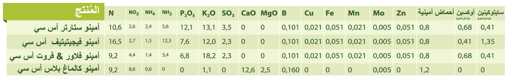 سبيد فول أمينو فيجيتيتيف أس سي عبارة عن سماد سائل القوام مركّز معلّق يحتوي على النتروجين و الفوسفور و البوتاسيوم +6 عناصر صغرى و نادرة + كبريت ، تم إضافة الأحماض الأمينية إليه بالإضافة إلى الهرمونات . سبيد فول فيجيتيتيف أس سي تمّ تركيبه خصيصاً لدعم النبات بالمواد و العناصر الغذائية في مرحلة التكوين الخضري و ذلك بتأمين المغذيّات بشكل مثالي مع الكمية المطلوبة من النتروجين .